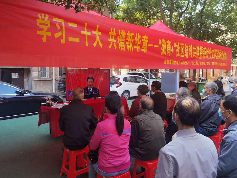在商之都的各大商場(chǎng)內(nèi),電子屏循環(huán)播放著“學(xué)習(xí)二十大,永遠(yuǎn)跟黨走,奮進(jìn)新征程”“喜迎二十大,奮進(jìn)新征程“宣傳字幕。合肥中心廣場(chǎng)組織黨員、賣(mài)場(chǎng)主管以上人員、國(guó)生電器及紅府超市員工代表以集體唱紅歌、升國(guó)旗的形式慶祝黨的二十大勝利召開(kāi)??偛奎h支部、國(guó)生電器黨支部、合肥中心廣場(chǎng)黨支部黨員走進(jìn)三牌樓社區(qū),與社區(qū)黨委聯(lián)合開(kāi)展了“學(xué)習(xí)二十大 共譜新華章——‘徽商+’社區(qū)結(jié)對(duì)共建暨新時(shí)代文明實(shí)踐活動(dòng)”,和社區(qū)里的退休黨員群眾一起收看了二十大開(kāi)幕盛況,并上門(mén)為省經(jīng)信委機(jī)械小區(qū)居民清洗空調(diào)。