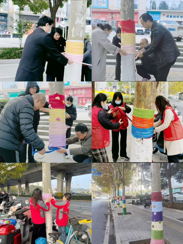 12月3日上午9時,活動在合肥優(yōu)山美地鄰里中心北面長江西路沿線火熱開展?,F(xiàn)場,大家共同投身手工DIY"給行道樹穿衣服"公益活動。大家分工協(xié)作、默契配合,穿線、固定、“打扮”,每一個步驟都細(xì)致認(rèn)真,用靈巧的雙手為樹木編織起溫暖防護外衣,在寒冷的冬日里為行道樹增添了一抹溫情亮色,以實際行動踐行公益初心、傳遞志愿力量、守護城市綠色。