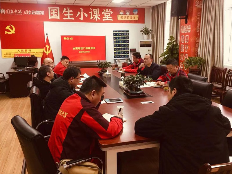 12月8日下午,國生電器在總部三樓會(huì)議室召開合肥地區(qū)門店座談會(huì),國生電器董事長、總經(jīng)理程曉曦、副總經(jīng)理武軍、總經(jīng)理助理唐成寶、業(yè)務(wù)分公司、經(jīng)營發(fā)展中心負(fù)責(zé)人及合肥地區(qū)門店店長參與座談。