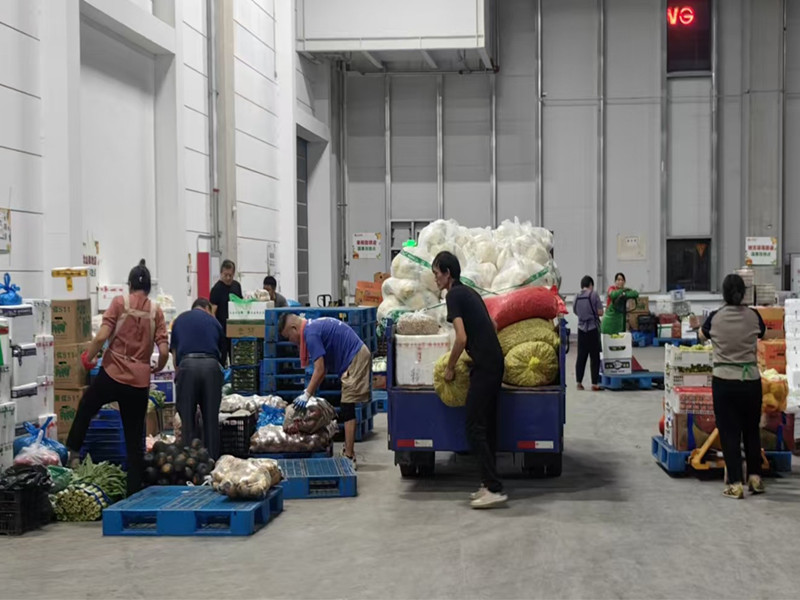 當(dāng)城市還在沉睡,紅府生鮮倉庫的庫門已在每晚9點(diǎn)準(zhǔn)時(shí)開啟,直至次日清晨7點(diǎn)。倉庫員工們正對照訂單,爭分奪秒地分揀從產(chǎn)地直達(dá)的新鮮食材,每一批生鮮都要經(jīng)過嚴(yán)格品質(zhì)篩選?!斑@些都是今天門店的‘生命線’,必須第一時(shí)間配送到崗。”品控員張玉蘭一邊檢查青菜的鮮度,一邊介紹,“不合格的堅(jiān)決不能出庫,要讓市民吃得放心?!?