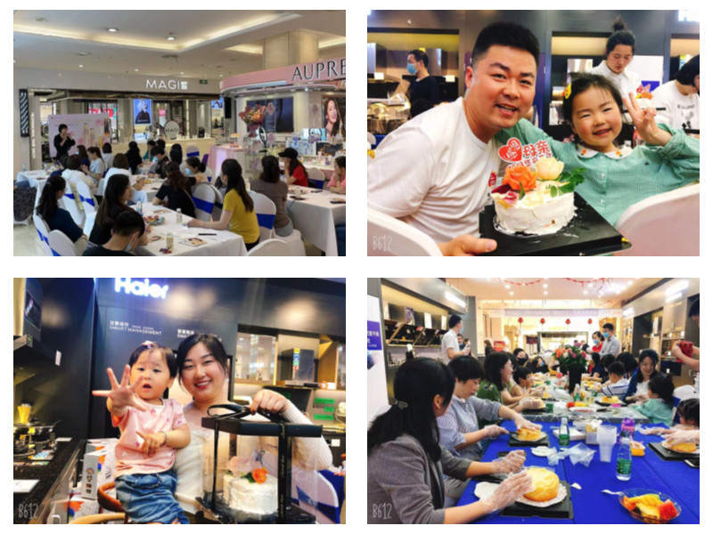 從國生電器海爾卡薩帝專廳開展的“烘焙體驗(yàn)”活動現(xiàn)場,傳來陣陣香味和歡笑聲。媽媽們帶著小朋友,在烘焙老師的指導(dǎo)下,興致勃勃一起親手制作蛋糕,在蛋糕胚上涂奶油、插花、裝飾水果......現(xiàn)場氣氛既熱鬧又溫馨,媽媽們和孩子們一邊享受視覺和舌尖上的盛宴,一邊用相機(jī)定格這快樂時光,在海爾卡薩帝洗衣機(jī)展廳還舉辦了花藝展示活動。
