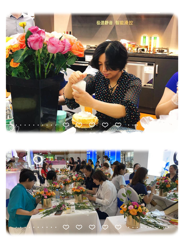 從國生電器海爾卡薩帝專廳開展的“烘焙體驗(yàn)”活動現(xiàn)場,傳來陣陣香味和歡笑聲。媽媽們帶著小朋友,在烘焙老師的指導(dǎo)下,興致勃勃一起親手制作蛋糕,在蛋糕胚上涂奶油、插花、裝飾水果......現(xiàn)場氣氛既熱鬧又溫馨,媽媽們和孩子們一邊享受視覺和舌尖上的盛宴,一邊用相機(jī)定格這快樂時光,在海爾卡薩帝洗衣機(jī)展廳還舉辦了花藝展示活動。